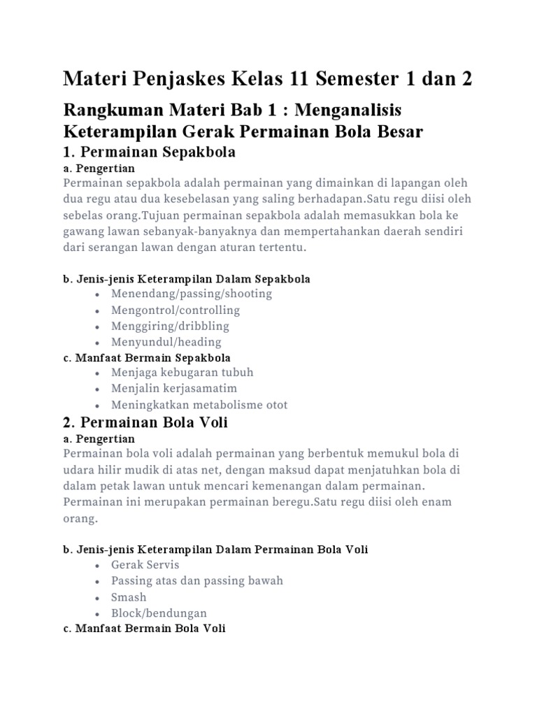Contoh Soal Essay Penjaskes Kelas 11 Semester 2